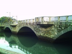 たづなきわたる」の和歌からあしべ橋の名。不老橋の損傷が著しく、不老橋の保存を目的として架けられた。(1991年竣工)建設にあたり、歴史的な景観が損なわれると社会問題になったが、結果的には景観に配慮したものとなっている。不老橋のすぐ海側に架かり、橋脚は太鼓橋風で、表面は石張りで、石造り風に造られている。親柱は当地の青御影石が使われている。片男波公園や海水浴場に行くには、便利な橋となっている。