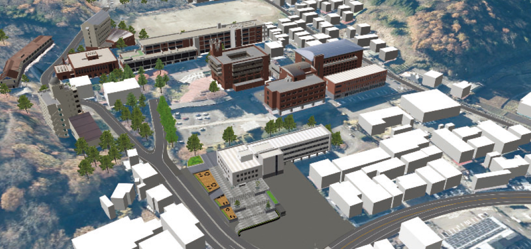 UC-win/Roadによりデジタルツインとして再現した都留文科大学の外観