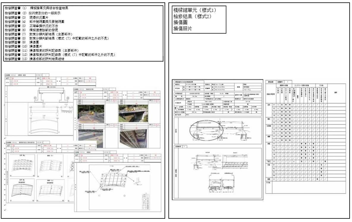 接下來的「橋樑長壽化修繕計劃策定支援系統」是以道路保全中心的「道路資產管理手冊」與國綜研的「路橋的計劃管理相關調查研究」為基礎,對每個橋樑的資訊管理與維修工事的內容、工費、所花時間進行檢驗以及對檢驗維修順序的探討等,並輸出相關的計算書。 要預測部件隨著時間的推移的磨損的程度,需要用到「破損模型」。收集大量橋樑中主要部件經過年數不同產生的磨損數據,透過回歸曲線進行建模。例如,達到損壞以及變形已經很大範圍的「健全度IV」所需的年數來看,鹽漬區以外的地區預計為21年,鹽漬區甚至預計14年就會達到。 維修工法用重新粉刷還是直接更換透過計算直接公式費來決定,同時透過單價與數量計算出維修費用。 作為橋樑維修計劃的中心型軟體,它也可以與其它系統或者橋樑總帳等多種數據進行連動。