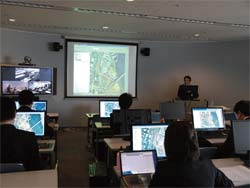 1月18日、フォーラムエイト東京本社で「浸水氾濫津波解析セミナー」が開催されました。いつものように、テレビ会議システムを使って、各地の営業所に設けられたセミナー会場に双方向で中継しながらの進行です。講師を務めるのは、フォーラムエイトUC-1開発第1グループの羽田誠さんと、システム開発グループシミュレータ開発チームの小川隆広さんです。