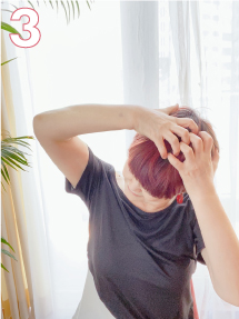 3 その角度でうなずくように顎を引く動作を5~6回繰り返す。この時さわっている指の下が動くのを感じて下さい。