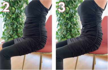 3 鼻から息を吐いてお腹をえぐるようにへこませる。