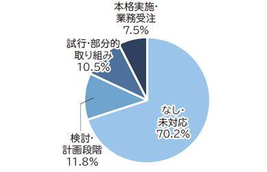 一方、すでに導入に向けて動き出している企業も見られます。11.8%は社内グループの立ち上げやシステム導入の検討を開始し、10.5%は業務の一部で新たなデジタル活用を試行。さらに7.5%はすでに業務で成果を上げていることが分かりました。