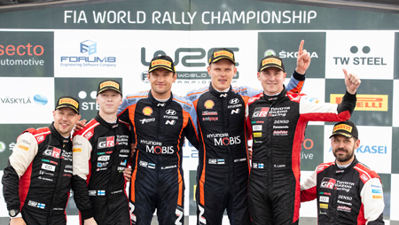 ラリーは競技2日目にヒョンデのオィット・タナック(エストニア)が首位に立つ展開。トヨタ勢が追うものの、タナックも僅差で逃げ続ける。最終日を前にして、タナックと2番手ロバンペラの差はわずかに8.4秒。ふたりの対決に注目が集まったが、最終的には6.8秒差でタナックが逃げ切り、今シーズン2勝目を獲得した。母国エストニアでの敗戦から一転、ヒョンデに初のフィンランド勝利をもたらした。