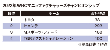 2022年シーズンの世界ラリー選手権(WRC)は、8月の第9戦ベルギーまでを終え、依然としてTOYOTA GAZOO Racing World Rally Team(TGR WRT)のカッレ・ロバンペラ(フィンランド)/ヨンネ・ハルットゥネン(フィンランド)がチャンピオンシップをリードしている。これまで同様、ドライバーズ、コ・ドライバーズ、そしてマニュファクチャラーズの3選手権でTGR WRTが抜きんでている状態に変わりはない。