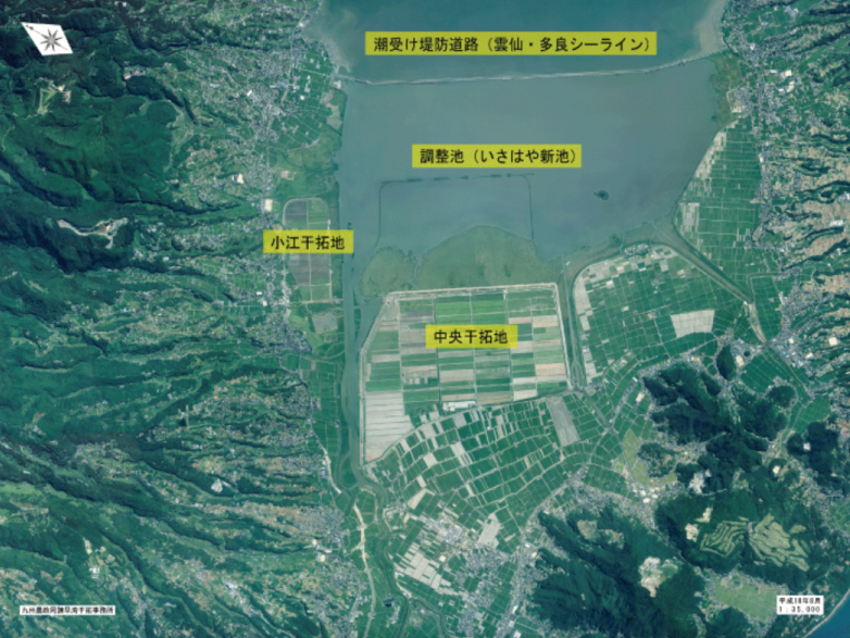 本明川は、その源を長崎県諫早市五家原岳(標高1,057m)に発し、多良山系の急峻な山麓を南下し、湯野尾川・目代川などの支川を合流して下流の諫早平野を潤し、福田川、半造川を合わせて有明海に注ぐ、幹川流路延長が僅か28km、流域面積も僅か249km2の一級河川です。249㎞2は10㎞×5㎞の長方形に相当します。これ程小規模な一級河川なのです。これらから本明川は非常に珍しい一級河川であるといえます。