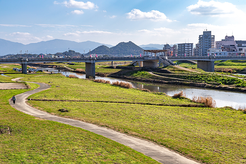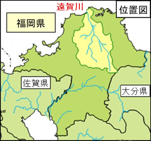 遠賀川は、福岡県嘉麻市の馬見山に源を発し響灘に注ぐ、幹川流路延長61km、流域面積1,026km2の一級河川です。