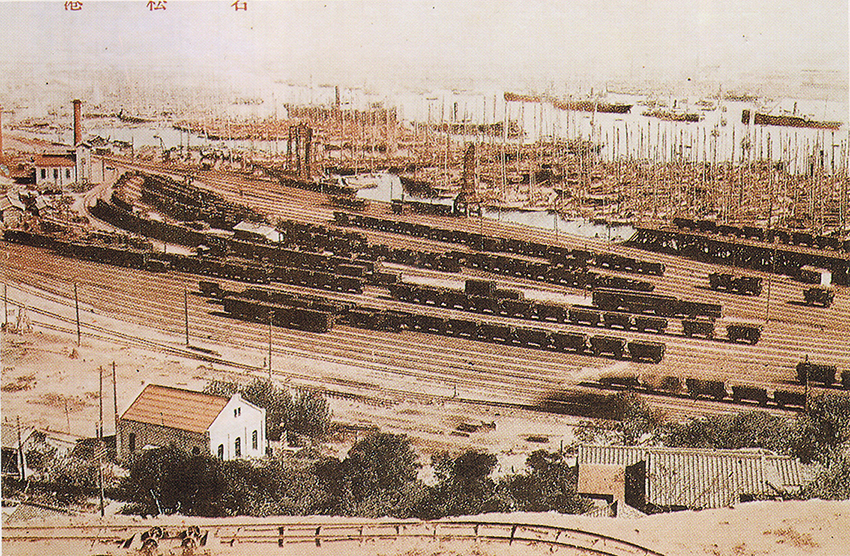 石炭の積み出しを行っていた若松港と若松駅 (大正期)