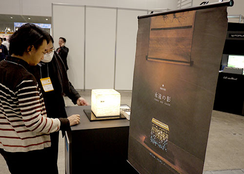 和紙職人とのコラボにより生まれた、インタラクティブなフィギュア用ライトステージ。手をかざすことで照明や音をコントロールできる。