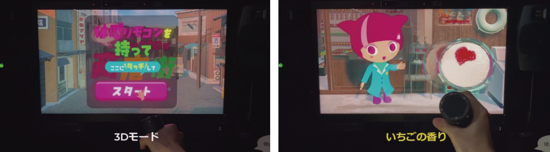 触覚・香り・3D映像により、昭和100年商店街をインタラクティブに体験できます。コンテンツの実在感を高め、理解を深める新たな感覚メディアの可能性を示します。体験者が登場人物と感覚を共有することで、言語に加えて直感的に情報や感情を伝える、誰もが安心して楽しめる標準的な提示方法の確立を目指します。