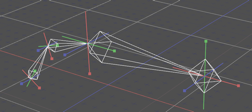 それぞれのボーンにはXYZ軸の方向が軸ごとの色で表示されます。