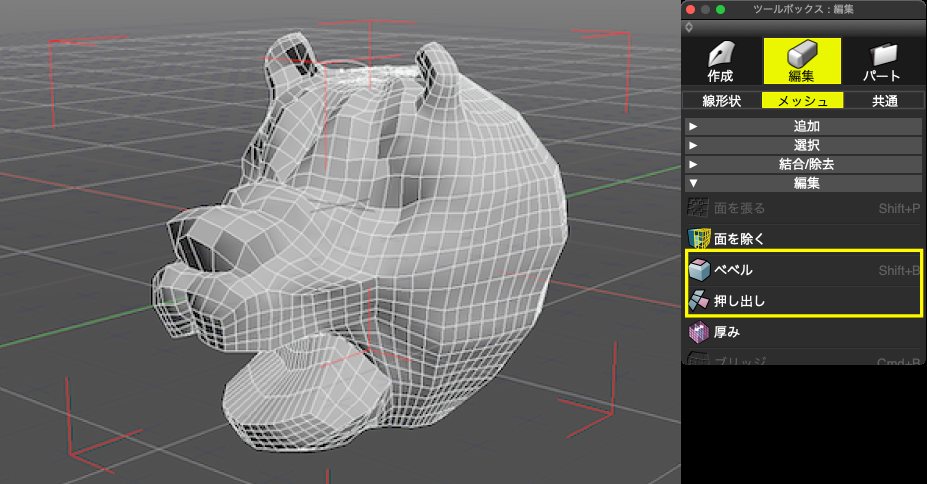 2.「押し出し」や「ベベル」で大まかな形状を作成 |