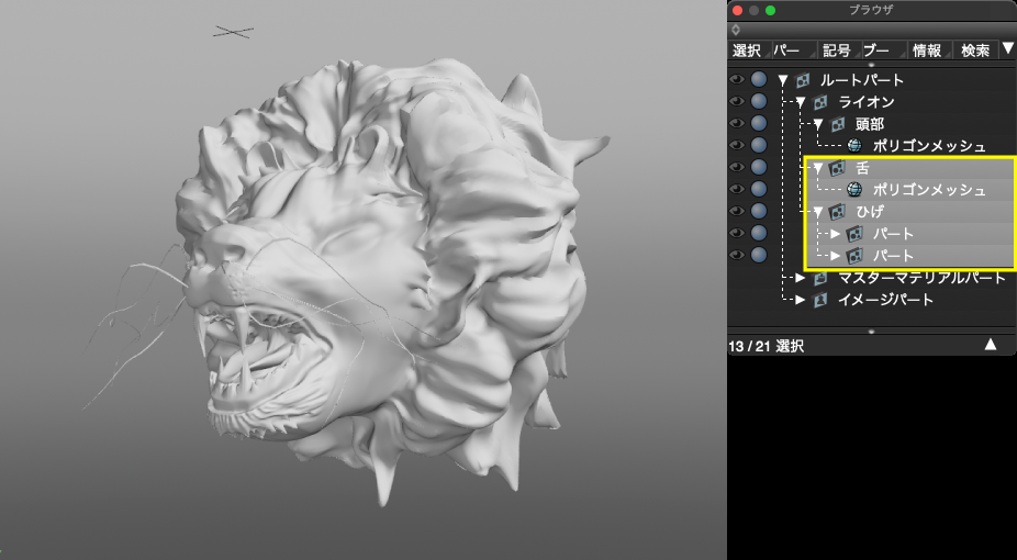 5.「再分割」で細かくし、タテガミ部分にディティールをつける |