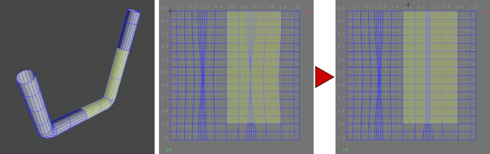 上面、底面のない円柱やパイプなどのUVを境界稜線のうち、最もUV原点に近いものを基準に整列します。