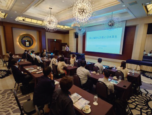京都大学大学院 工学研究科 教授、藤井聡氏より「国土強靱化と日本再生」をテーマに、首都直下地震や南海トラフ地震など巨大災害への備えが語られました。東日本大震災を踏まえた「列島強靭化10年計画」をもとに、堤防や耐震補強、緊急輸送道路の整備といったハード対策の重要性を強調し、ソフト対策はそれを補完する立場にあると強調されました。また、国家予算は輸出産業より国民所得の向上を重視すべきであり、財源確保には民間資金の活用も重要と指摘。さらに、土木学会のレポートや南海トラフ地震への公共投資効果が紹介され、インフラ整備と民間投資を組み合わせた総合的な防災の必要性が示されました。
