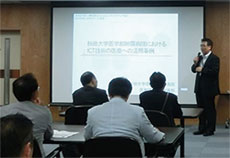 全授業を英語で行い、先進的な教育理念を掲げる国際教養大学(AIU)では、大学紹介と講演が行われました。鈴木典比古学長のご挨拶に続いて、アジア地域研究連携機構長 熊谷嘉隆様による「アジア地域研究連携機構の取り組み:日本酒の販促」と題した講演を聴講しました。若者離れによる担い手不足が県内最大の問題として挙げられ、これを解決するには、大学の研究・地域貢献・学生教育の3つをうまく連携させることが大切であるという考えのもと、これまでの取り組みについて事例を交えた紹介がありました。秋田県は、全国学力テストで6年連続1位になるなど、常にトップレベルの成績を残しており、このような教育面での取り組みは今後ますます重要になると考えられます。