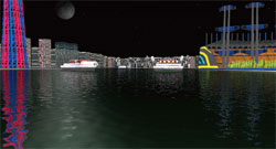【図4】海沿いのプールと洋上のタンカー