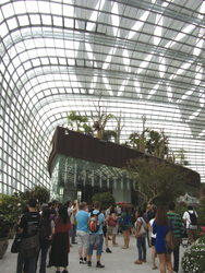マリーナベイ開発の一環として、ガーデンズ・バイ・ザ・ベイが2012年にオープン【図4】。この施設は巨大な植物園であり、CAADRIA学会では設計者による基調講演と、計画者による現地ツアーが実施された。現在オープンしている「ベイサウス」地区は、約54ヘクタールの敷地に、2つのドーム型温室、18本の「スーパーツリー」などが完成。