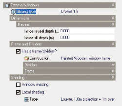 また、窓についても、材質、厚み、断熱性能、反射性能、複層ガラスについては封入ガスの種類まで定義することができ、こちらについても熱貫流率が自動で計算されます。