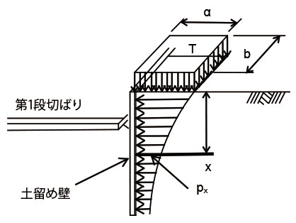 | ▲図4 建設用重機等が土留め壁に近接する場合の側圧 |