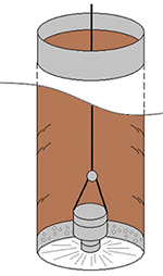 遠心力吹付け工法(図3) 技術資料 平成27年度に対応します。深礎の土留め工において、遠心力吹付け機のインペラーから遠心力でモルタルを水平に投射し、地山にモルタルを吹き付けることで、モルタルライニング土留めを形成する工法です。本工法は従来の吹付けコンクリート工法とは異なり、圧縮空気を用いないために粉じんが少なく、作業空間の狭い深礎における土留めの形成に適した方法です。