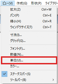 2. ビューメニューより「単位」をクリックし、設定したい単位を変更します。