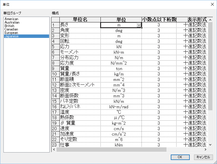 4. 既存のセクショングループと単位を較べて頂くと、自身で変更した単位に変わっている事が確認できます。