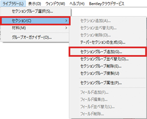 3. ライブラリーメニューより「セクション|セクショングループ追加」をクリックします。グループ名を入力して「OK」をクリックします