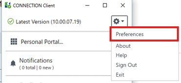 なお、一度ログイン後、設定メニューより「Preference」をクリックし、「Run the CONNECTION Client on system startup」のチェックを外すと、起動時に自動で立ち上がらないようにできます。