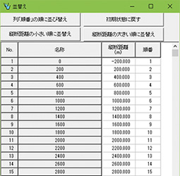 不等流の流路項目を一括して並び替える機能を追加します。図3の画面の列「順番」に数字を入力すると、入力した数値の小さい順に並び替えます。また、縦断距離の順に並び替える機能も用意しています。断面定義画面に対しても、同様の機能を追加します。