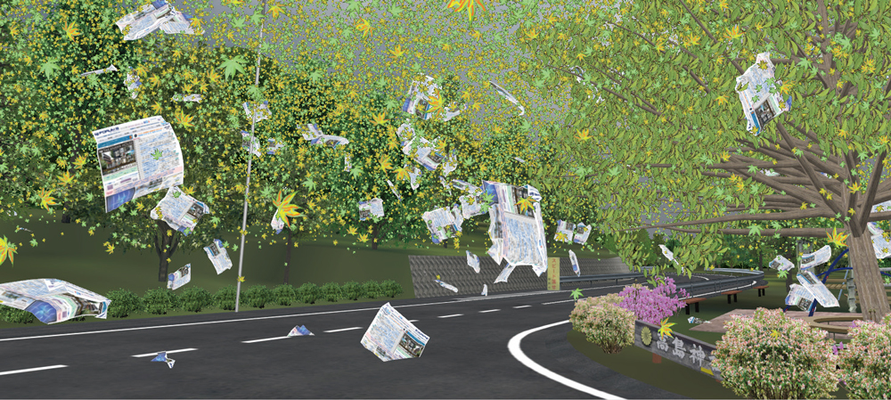 뮬레이션 중 바람의 영향으로 잎이나 천등의 쓰레기가 눈앞을 튀기는 모습을 표현할 수 있게 되었습니다. 이들 기능은 풍속을 고려한