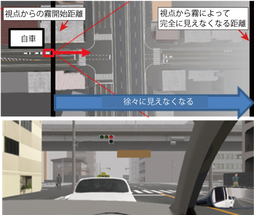 시뮬레이션의 시야 범위를 정확히 제어 가능하도록 안개의 시작 위치, 완전히 안개와 다른 환경이 보이지 않게 위치를 카메라의 실제 거리(미터 단위)로 설정하게 하였습니다.