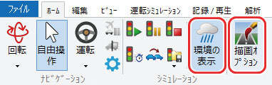 | 1 メニュー「環境の表示」と「描画オプション」と「影」設定 |