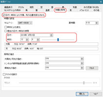 メニュー「ホーム」−「描画オプション」の「時間と照明」タブで「日付、時刻により太陽、月の位置を変化させる」にチェックを付けると、日時の設定が影の表示に反映されます。例えば、夏至の頃の影と冬至の頃の影の比較など、位置、季節や時刻による影の影響の違いを検証することができます。