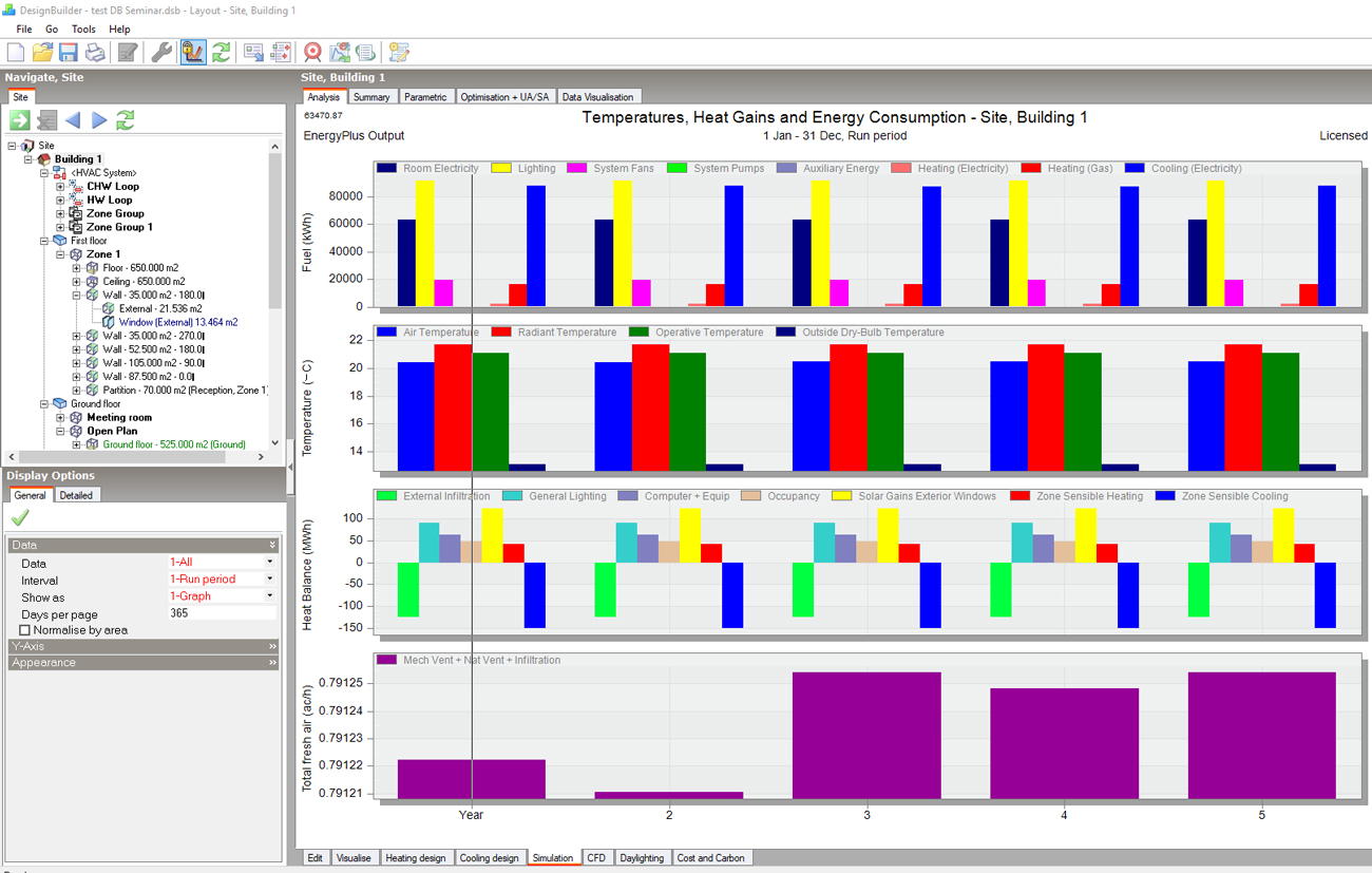 前言 DesignBuilder是建筑模拟软件,为优化建筑物内部空间的温热环境和能能量消耗来进行模拟。 将美国能源部的最高水平技术的Energyplus作为解算器,使用OpenGL可以迅速创建3D模型。 可以制作出正确的环境性能结果数据和高画质画面。接下来为大家介绍DesignBuilder Ver.6的新功能。 改进建模、报告与可视化 根据模型数据工具可以对表格进行编辑。另外用户可以对单独的显示器进行定义。 另外,全部的材料和窗口都可以用图像显示,甚至清晰的显示出模型的边缘,更容易确认模型。 计算自然换气气流的图片可以显示出来、可以通过视觉确认窗口、通风口、门等部分的通气情况。 改进模拟水平 DesignBuilder Ver.6中,、Energyplus Ver 8.9可以应用于求解器,可以对具有滞后性的最新相变材料(PCM)进行建模。 此外,现在只需一年的模拟可以使用多年。。 最大化改进灵敏度分析与不确定性模块 可以从能源和环境的角度对系统风险量化和建筑设计进行评估,并且已经安装了不确定性和灵敏度 (Uncertainty and Sensitivity Analysis)分析工具。 图4 不确定性(Uncertainty)分析结果 此外【揄チ的输出量(additional outputs)可以包含以最优化为目的的“目的(objective)”和“制約(constraint)”,从而进行更详细的分析。 揄チHVAC功能 在DesignBuilder中,有详细HVAC(Detailed HVAC)功能,用户可以自己组合部件来制作成空调系统,模拟能源情况。 改良照明功能 可以查看室内光照强度、分析日光率的照明功能现在可以在每个网格单元格中绘制数字文本。 图5 光照結果的数值 此外,Radiance的照明模拟现在可以并行运行,从而缩短了执行时间。 还添加了Radiance结果的随机性选项。 提高拓展性能 为插件和Python脚本提供API,还开发了用于Revit 2019上的DesignBuilder协调的插件。 |