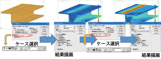 Ver.9.1では結果描画コマンド毎にケース指定の機能を追加しました。これにより、毎回ケース選択の操作を行うことなく、すぐに結果を描画することができるようになりました。
