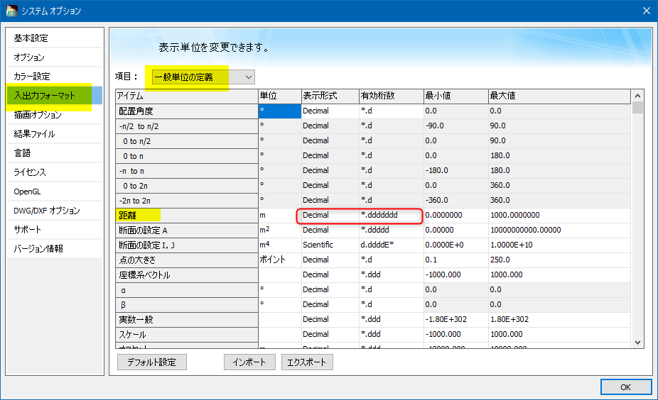 中立軸の距離 中立軸の位置の有効桁数を多くするには、図5の赤枠部分(一般単位の定義|距離)を設定します。 | ||||||||