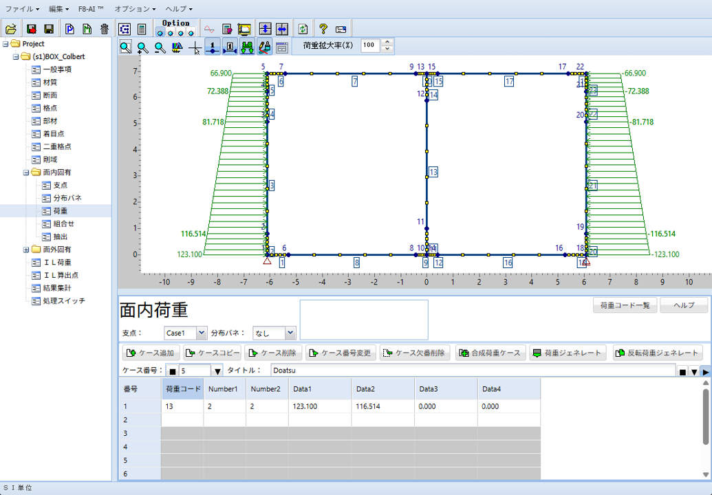 | 面内解析 | 分布荷重、集中荷重、格点集中荷重、温度荷重、プレストレス荷重、支点強制変位 |