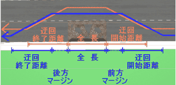 道路障害物の本体(陥没、テクスチャ、寸断範囲)の前後に、マージンを設定できるよう対応しました。交通規制モデルなどを併置する場合などに利用できます。また、迂回時の速度を制限できるようになり、より自然なシミュレーションが可能です。