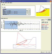 地震による盛土斜面の安定性評価を行うための手法として、地震力を静的な慣性力として破壊・非破壊の評価を行う従来の仕様設計機能に加え、地震後に残留する変位量に着目し、その大小により斜面の安定性を評価する性能設計手法として、地震時のすべり土塊の滑動変位量を回転モーメントの釣合い式から算出するニューマーク法による耐震性能の照査に対応しました。過圧密粘土や密な砂に対するひずみ軟化に伴う盛土材の強度劣化を考慮した解析も可能です。出力は各種時刻歴図に加え、入力地震波形に連動して動作する滑動変位量のアニメーション出力機能も備え、地震応答を視覚的に捉えることができます。 |