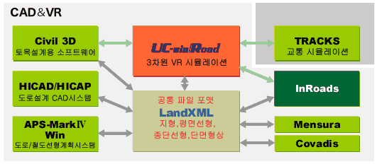 ●시작 「CAD&VR」의 제3탄으로써 개발중인 주식회사 벤트레 시스템사 「InRoads」와의 데이터 연계 툴을 소개하겠습니다. 3차원 도로 설계CAD인 「InRoads」에서 유효하게 CAD 데이터를 활용할 수 있고 또한, VR 시뮬레이션의 결과도 CAD 에 반영할 수가 있게 됩니다. 스무즈한 연계에 의한 CAD 데이터와 VR 시뮬레이션의 상호 데이터 변환을 실현합니다. 본 툴은 UC-win/Road 의 새로운 옵션으로써 2007년 2월말에 릴리스 할 예정입니다. ●InRoads 「InRoads」는 도로 건설 프로젝트에 있어서 설계에서 건설 현장까지의 도로・토지 설계 작업에서 필요한 모든 기능을 갖춘 「3차원 토지 조성/도로 설계 시스템」입니다. 나선, 독립된 비탈이나 수로의 제어등을 포함한 유저 정의의 표준적인 단면, 파라메터릭 드라이븐적인 의사 결정표등, 관련적으로 연계한 고도의 DTM기능을 제공하고 있습니다. 평면도, 측면도, 단면도, 사선의 분석 모델의 등고선 그림이 유저의 표준으로 추출할 수가 있습니다.