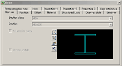 各種形鋼(H鋼、C鋼など)ごとに、断面のサイズ、材質などが細かく設定可能で、各国の形鋼がライブラリに登録されており、ライブラリの編集と追加も可能です。