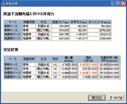 - 直接基礎として、転倒,滑動,地盤支持力の照査に対応しています。