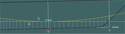 Maxsurf Stabilityにホギングとサギングが再び備えられました。しかし、その操作は以前のものと異なります。ハルを変形させる代わりに、ウォーターラインを動かすことでモデル化されます。これにより、重量と浮力分布の差による船舶ベンディングモデルで、より現実的なものとなります。これは、与えられた水線は、船舶がトリムやヒールしても、ホギングとサギングにより変化しないことを意味します。下のイラストは、正立ハイドロスタティックスで、トリム有り無しの状態を示しています。ホギングは1mです。