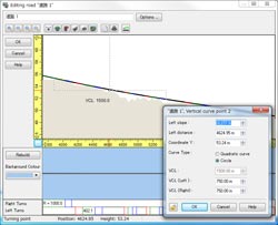 道路の縦断曲線(放物線)と合わせ、鉄道の単曲線(円弧)に対応しました。