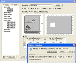 開口部照査拡張オプションでは、「開口部」画面上で開口部,荷重,照査位置を指定することができます。開口の形状については、矩形と円形から指定することができます。また、開口モデルは、「開口モデルの自動生成」により、既に入力したマンホール形状から開口部を自動的に生成することもできます。