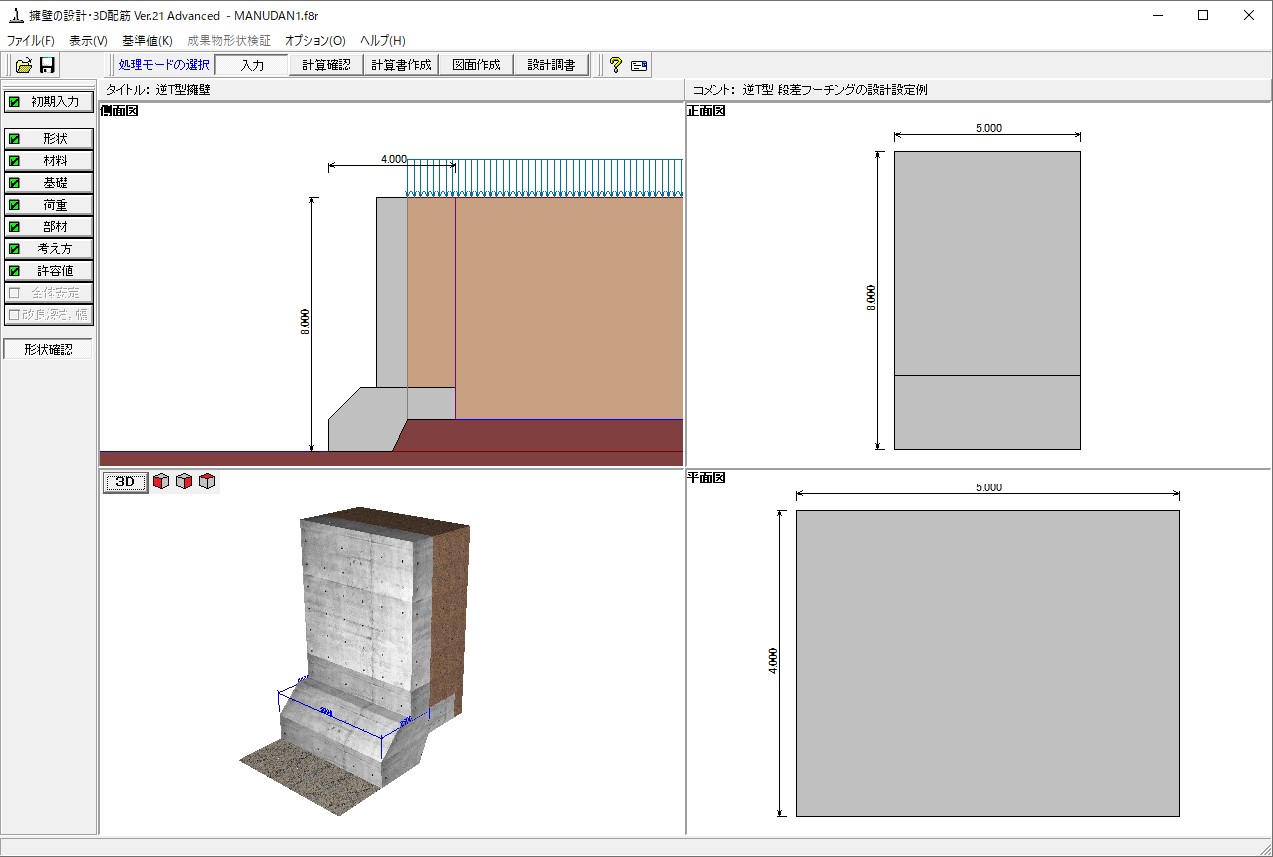 | 擋土墻的設計·3D鋼筋配置 Ver.21 | ||