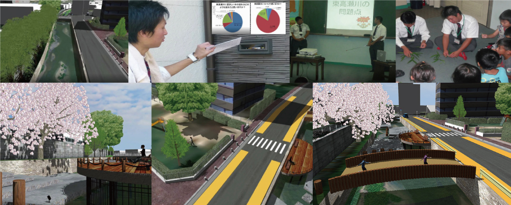 | 주민 설명회를 개최하고 도시개발에 대해 논의하기 위해 설문 조사를 실시했습니다. 주민들의 의견을 바탕으로 반딧불이가 살고 아이들이 놀 수 있는 아름다운 강으로 복원하는 것을 목표로 VR을 활용한 개선 계획을 세웠습니다. |