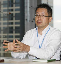 What characterize PCKK include development of special technologies based on its superiority in ICT, construction of original systems, and accumulated uses of elemental technologies that lead to CIM, such as 3D CAD and simulation as mentioned at the opening. One of the technological outcomes developed recently is a travelling tunnel inspection system "MIMM." This is a system to perform inspection with a vehicle carrying a high precision laser, CCD cameras, and LED lighting while travelling within a tunnel to solve problems in the present tunnel inspection, such as variation of assessment or oversight depending on the inspector, difficulty in judging progressive deformation, and inefficiency. Not requiring traffic control, it allows the user to grasp present situation and deformation rapidly, objectively and with high precision. Giving positional information to deformation to construct database, effective data for maintenance can also be provided. Information Systems Dept. that belongs to Management Division combines elemental technologies accumulated in individual fields inside the company not only to create superiority as a general consultant but also to support IT solutions outside. Mr. Keitaro Konuma, Senior Manager in the Composite Technologies Section, Structure Dept., Transport Infrastructure Division focuses on the increase in the needs for a database system to make maintenance of infrastructure more efficient and its simulation as the recent tendency. They are based on the active efforts of PCKK on utilizing ICT from early and the expertise acquired as a result. Mr. Yasushi Itou summarizes the use of ICT into two phases: before structure is complete (design and simulation) and after completion (work progress control). As to the former, he explains that ICT promotes improvement of efficiency in the design process that is getting sophisticated and complicated. This is backed by the importance of simulation due to the characteristics of the job as construction of a structure, which does not allow experiment or rebuilding with a mock-up, as well as its corporate culture to put emphasis on ICT, and rapid enhancement of environment for using ICT. As to the latter, accumulation of history data by introducing ICT in work progress control will lead to proper judgment of progressive deformation in repair and reinforcement in the future.