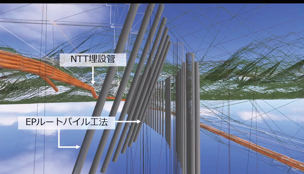 | VRを活用した特殊工法の説明。地中での作業もリアルに再現している |